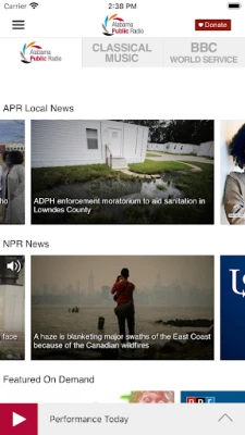 The Alabama Public Radio App allows you to listen to WUAL-FM, pause and rewind the live audio, view the program schedule, and wake up to APR with the alarm clock!