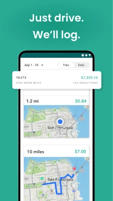 • Drive with the our mileage tracker running in the background and your trips are logged automatically